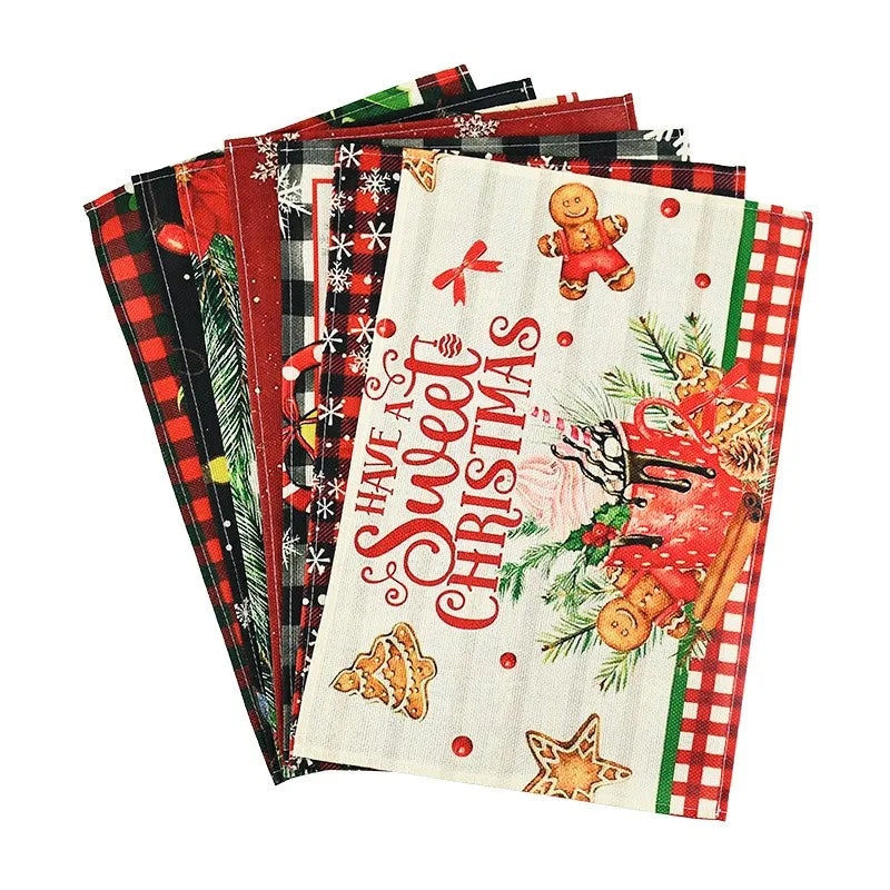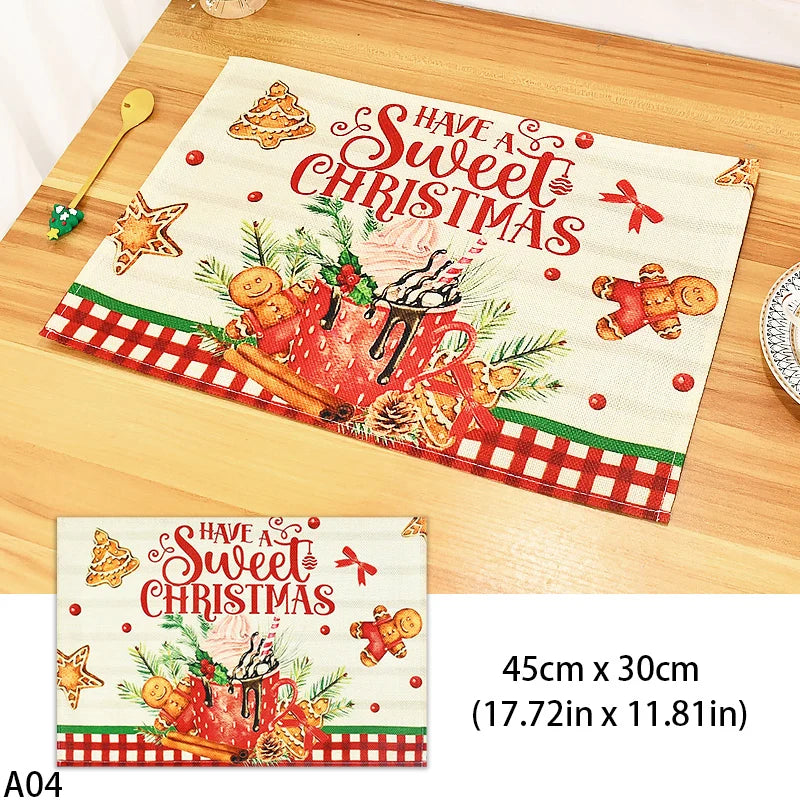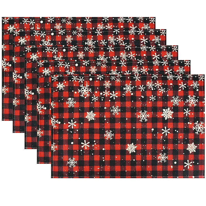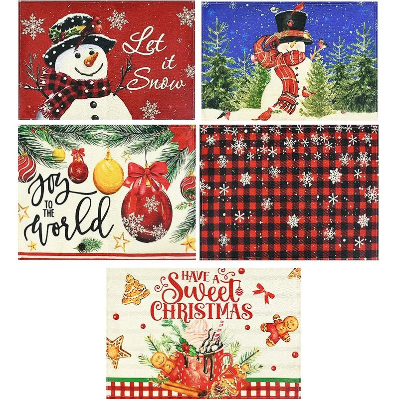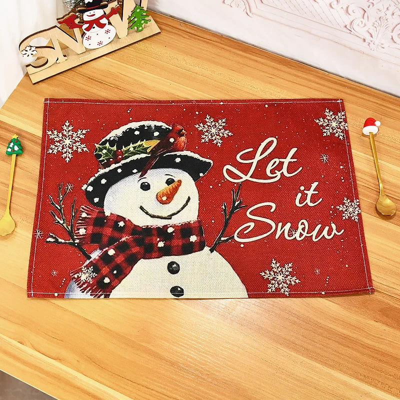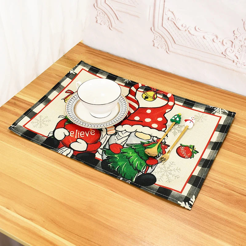 1/2pcs Linen Christmas Placemats – 30x45cm Buffalo Plaid Snowman Gnome Table Mats for Home Decor