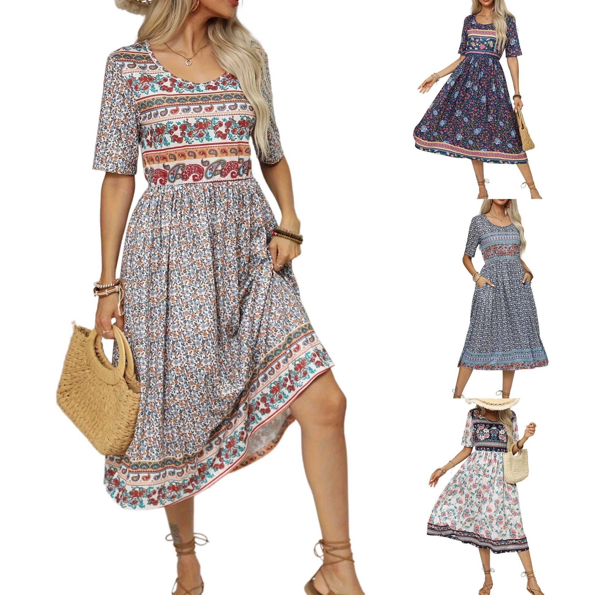 European & American Bohemian Print Long Dress