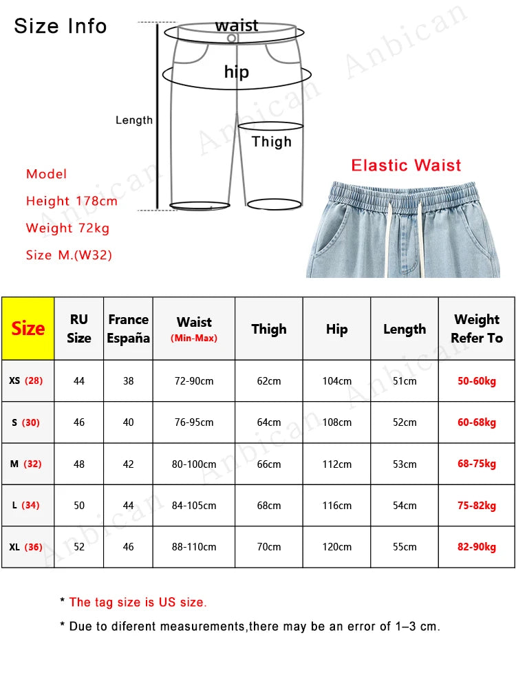 Summer Denim Shorts Men Korean Fashion Washed Cotton Baggy Drawstring Casual Shorts