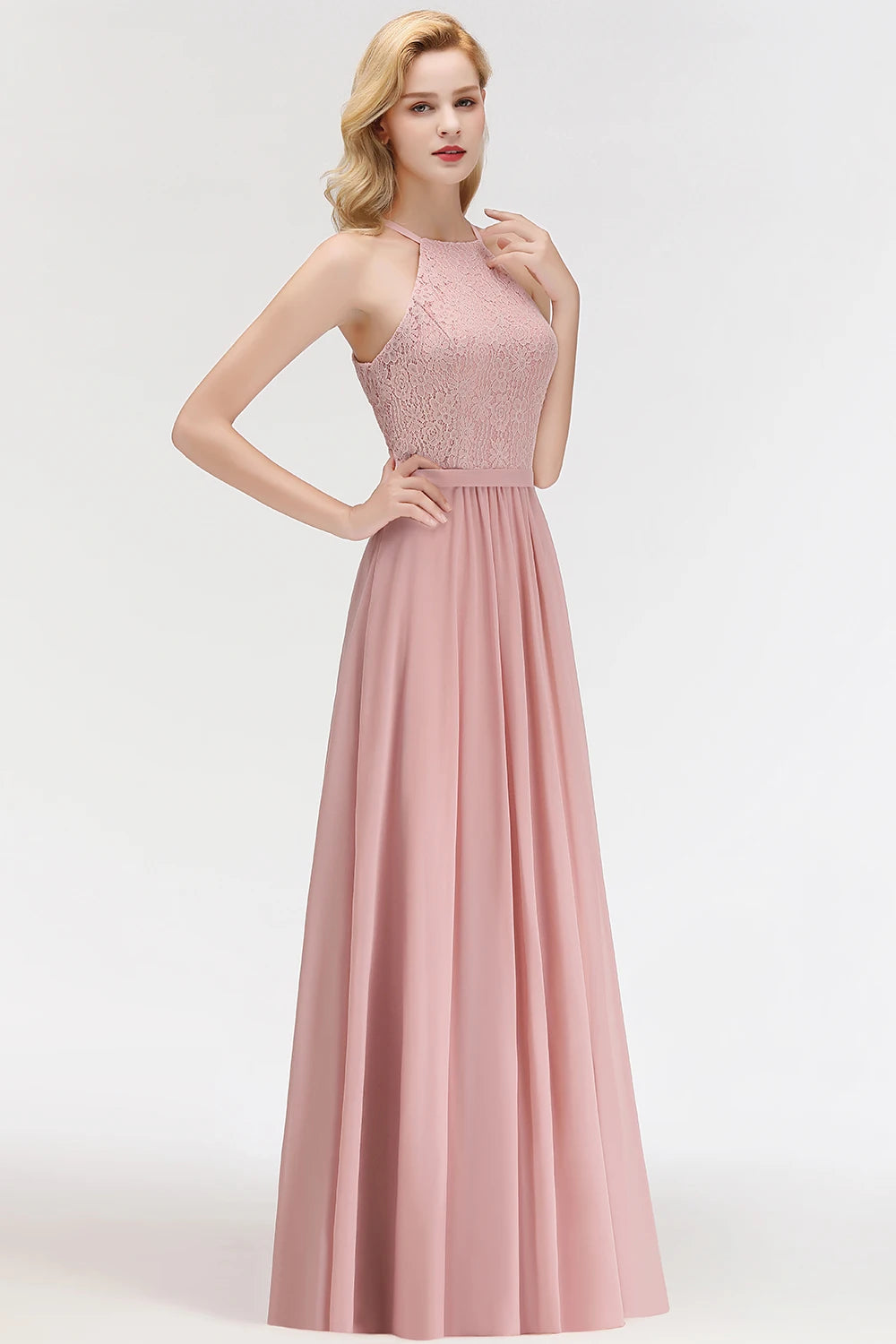 Floral Lace Sleeveless Bridesmaid Dress