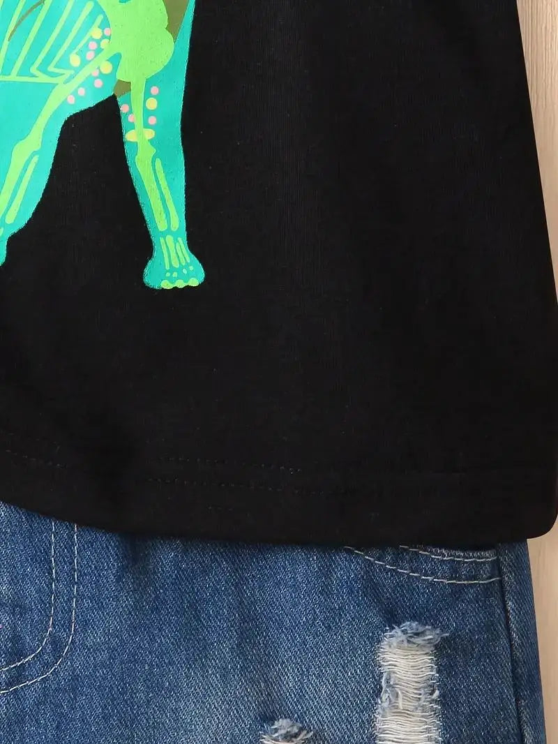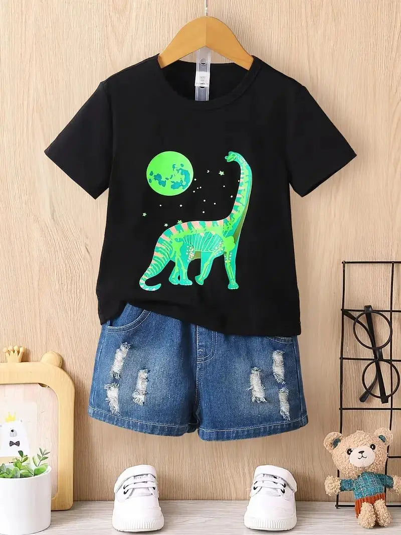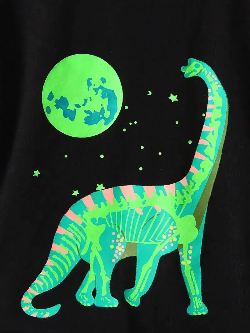 Cartoon Dinosaur & Planet Print Boy's Casual T-Shirt