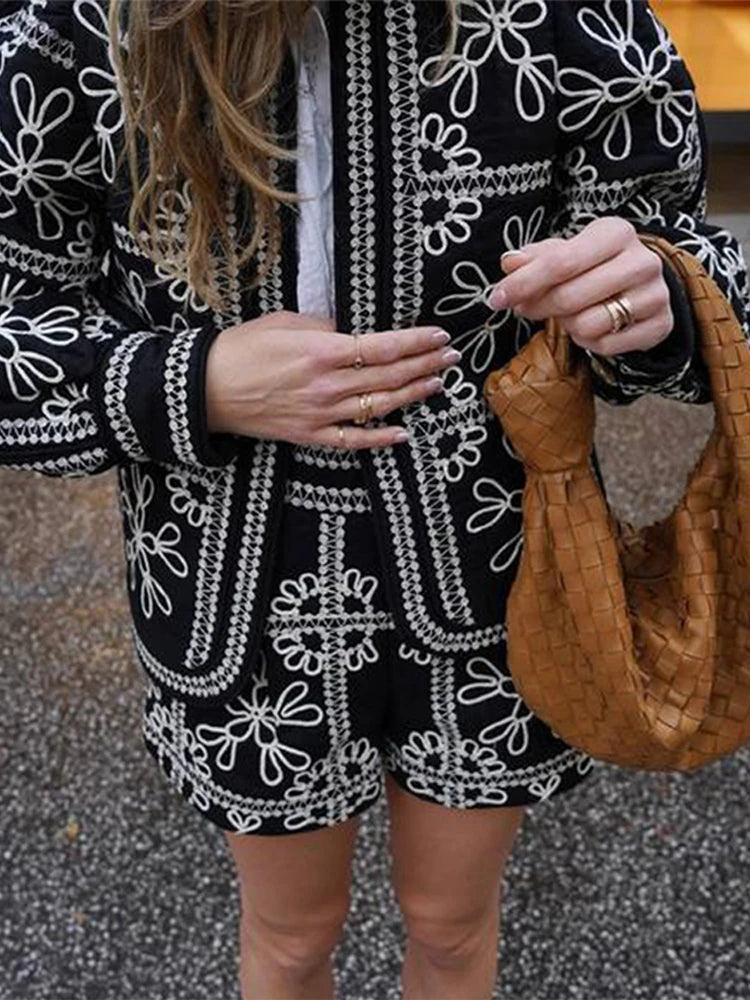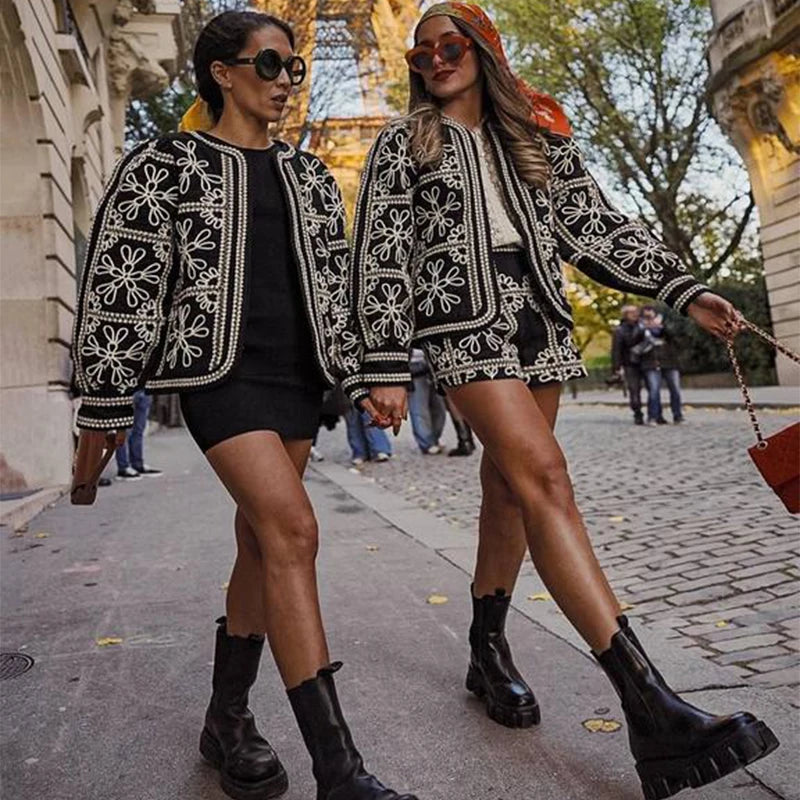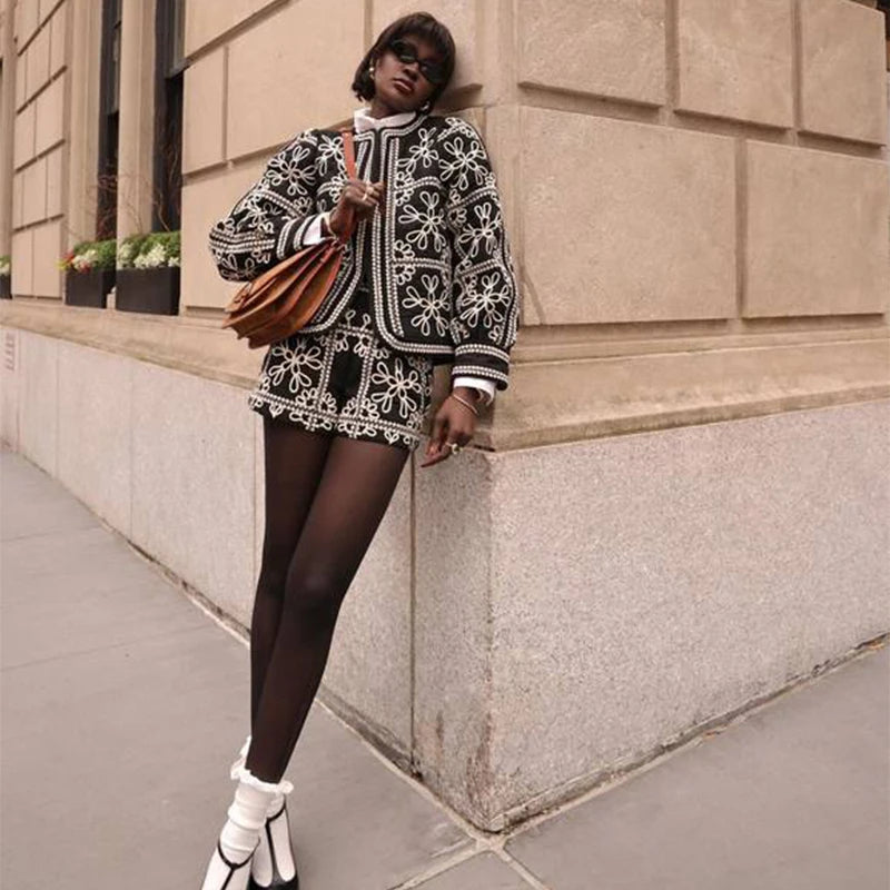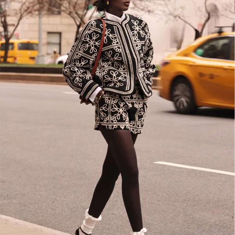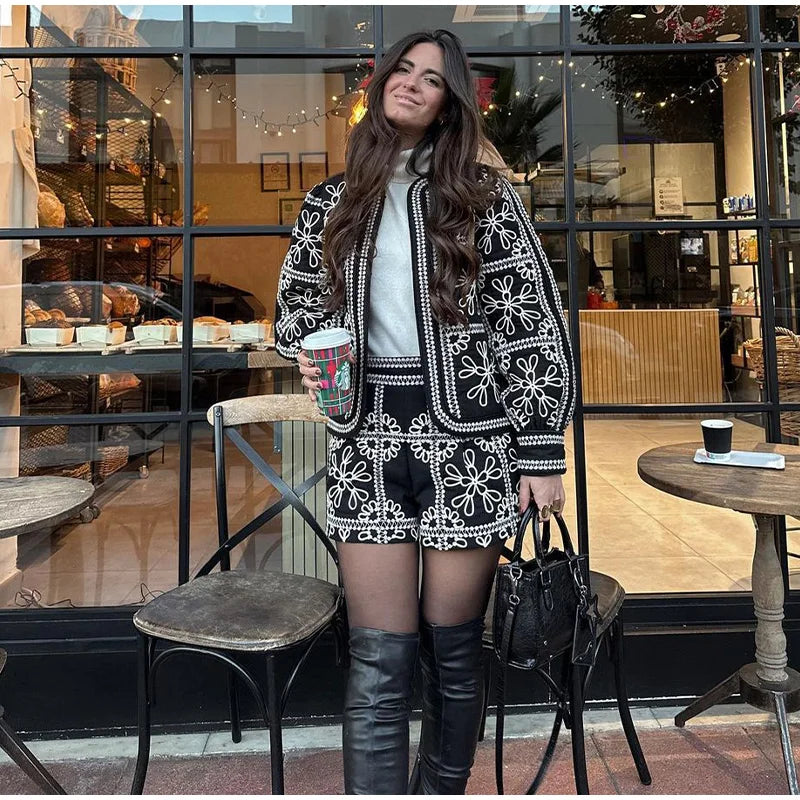 Elegant Autumn Lantern Sleeve Shorts Set - Women's Streetwear