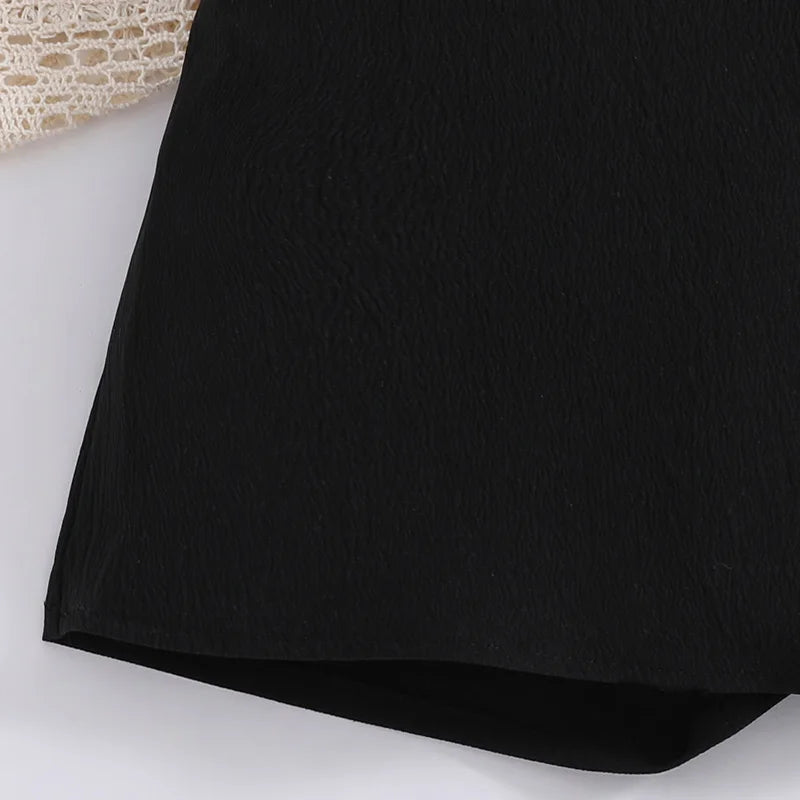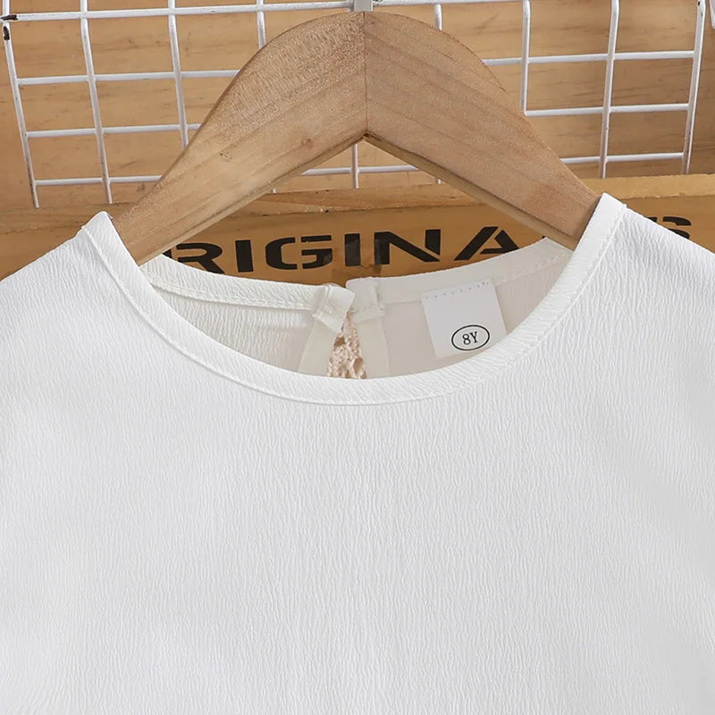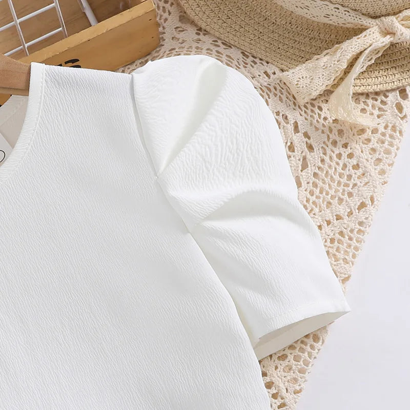 Girl's Summer Two-Piece Set – White Top & Black Culottes in Classic Preppy Style