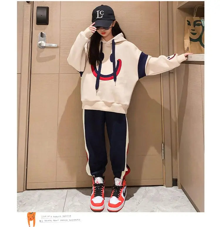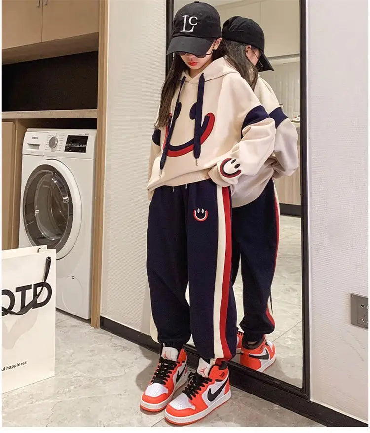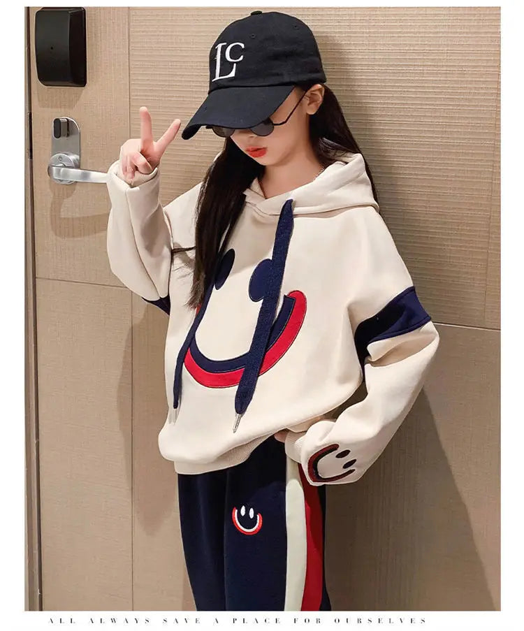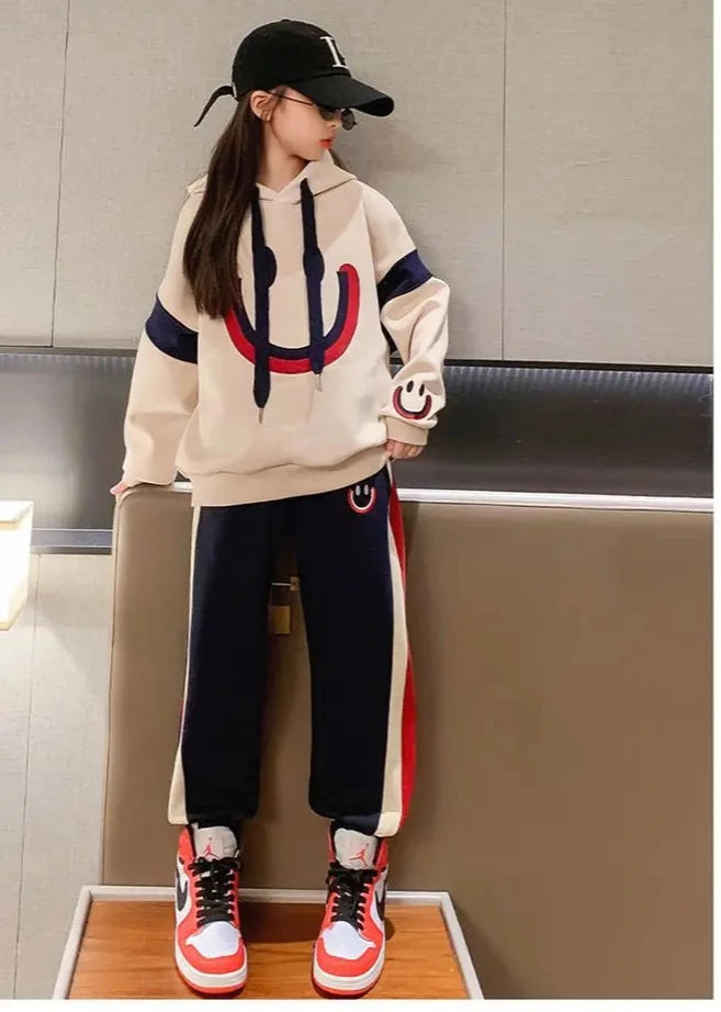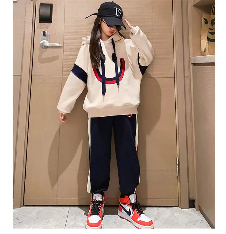 Girls' 2-Piece Casual Cotton Hoodie & Pants Sports Set