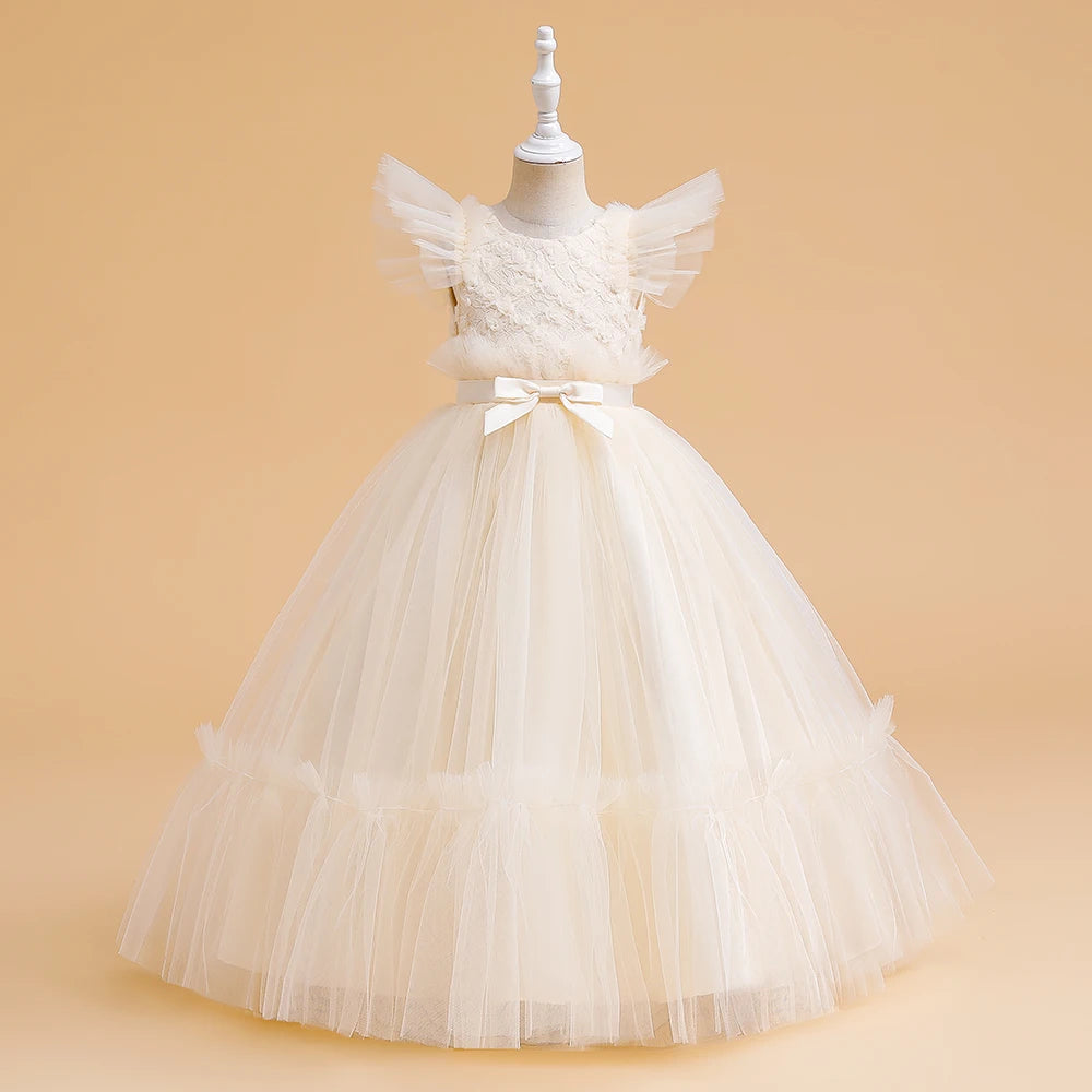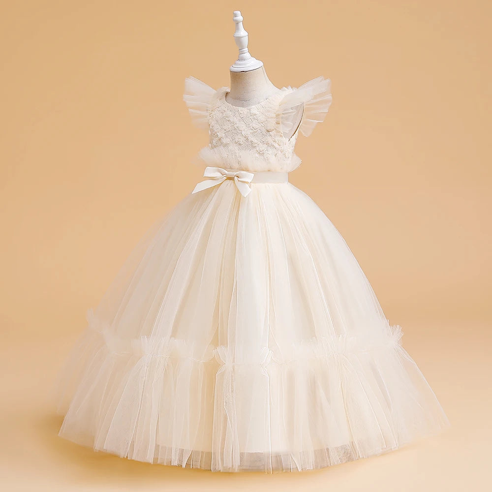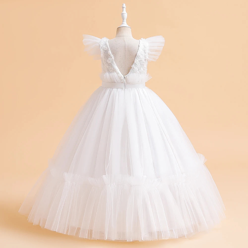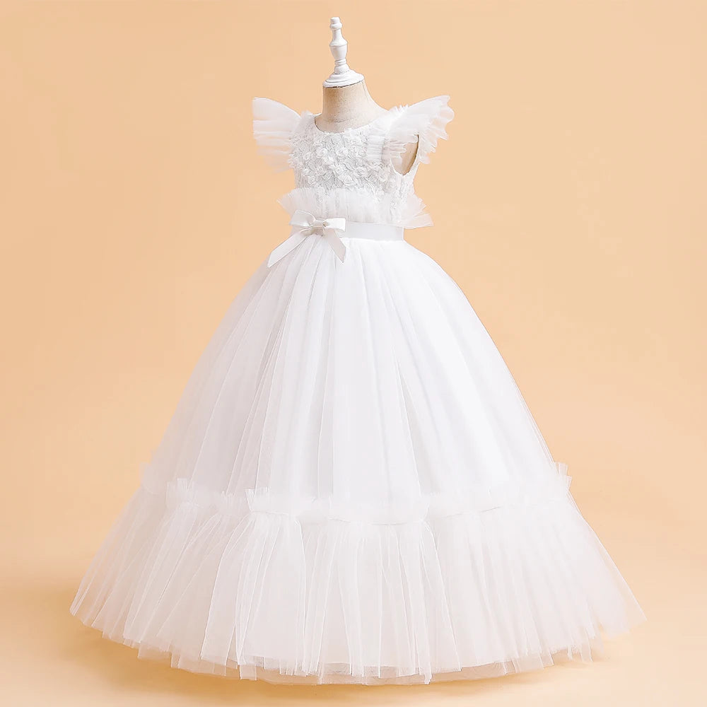 Girls' Christmas Flower Dress - Long Princess Gown for Bridesmaids