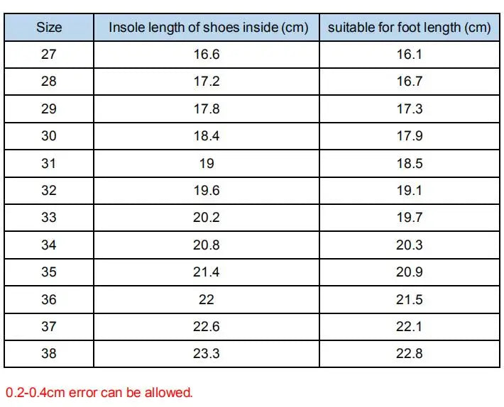 - Size Range: 27-38