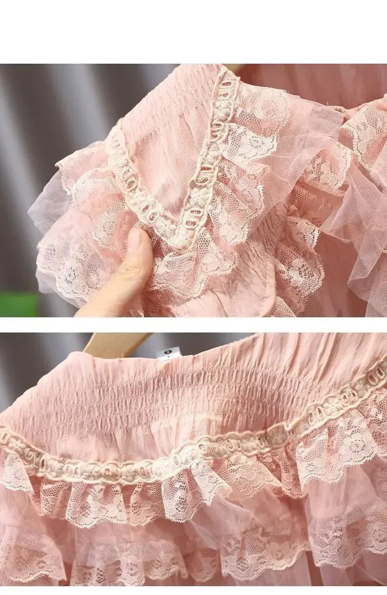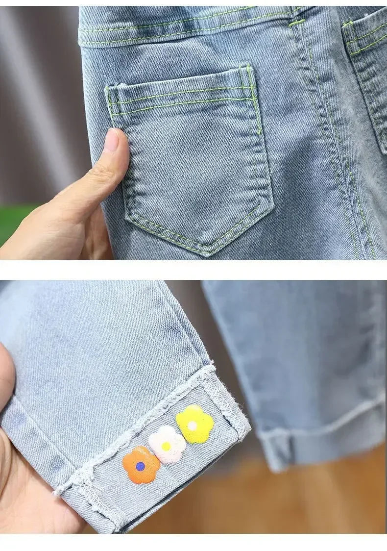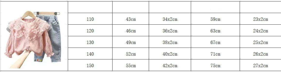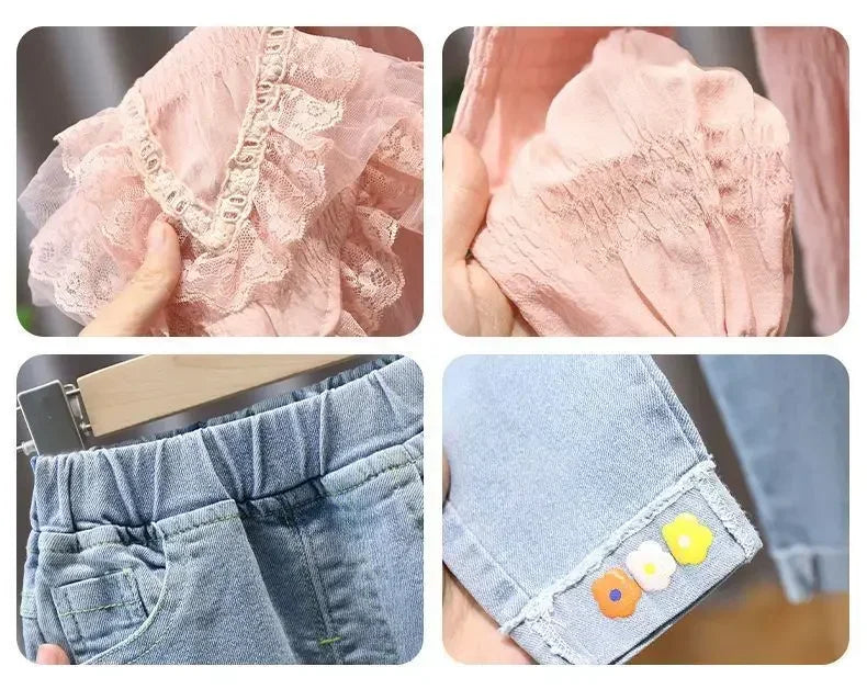 Girls' Spring Autumn Lace Shirt & Denim Jeans Set