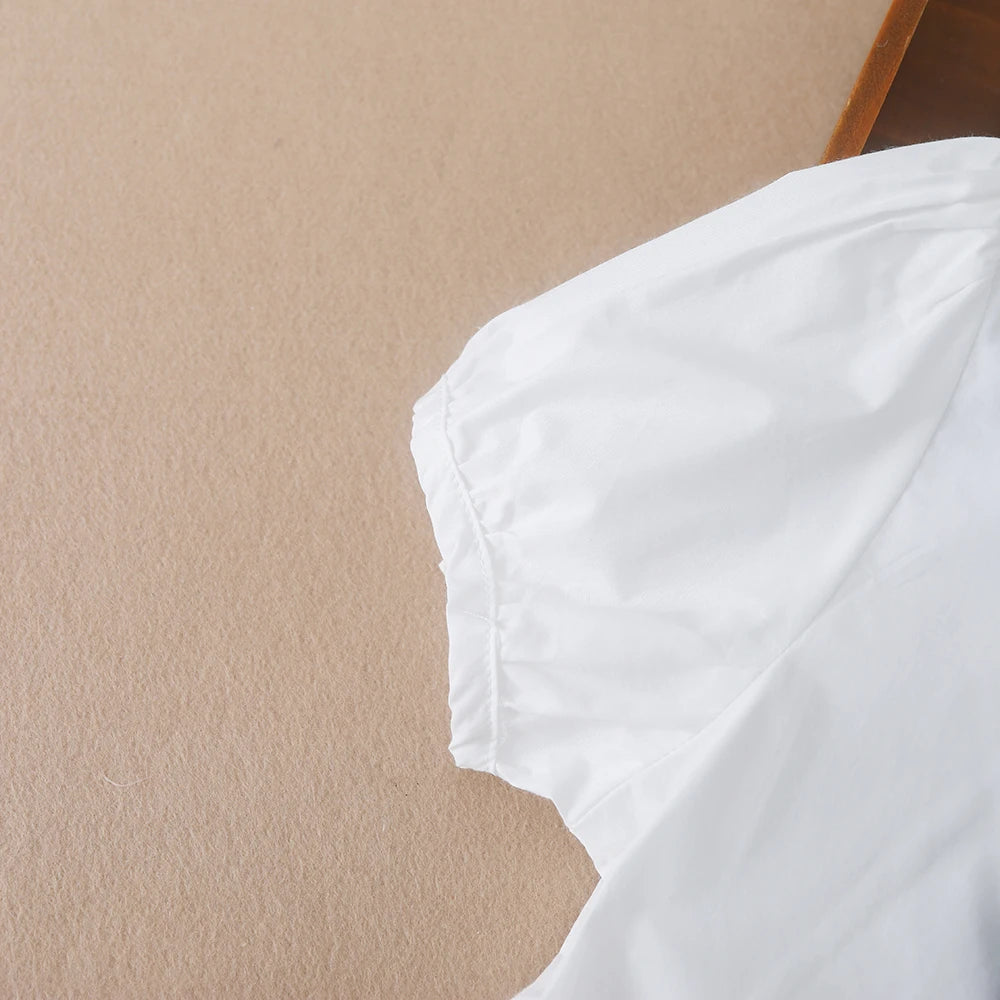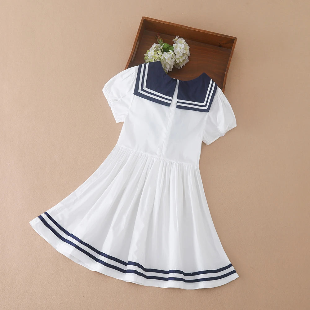 Girls' Summer Cotton Dress – Preppy Style with Bow & Turn-Down Collar
