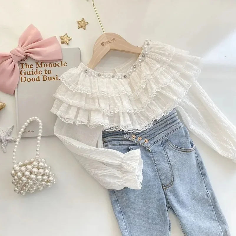 Baby Girls' Fall Fashion: Pink Lace Long Sleeve Blouse (7-13 years)