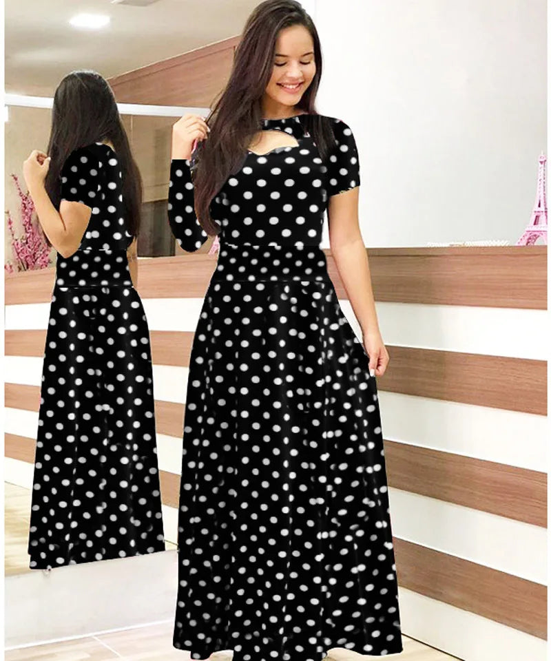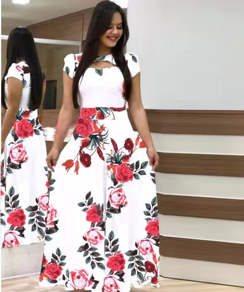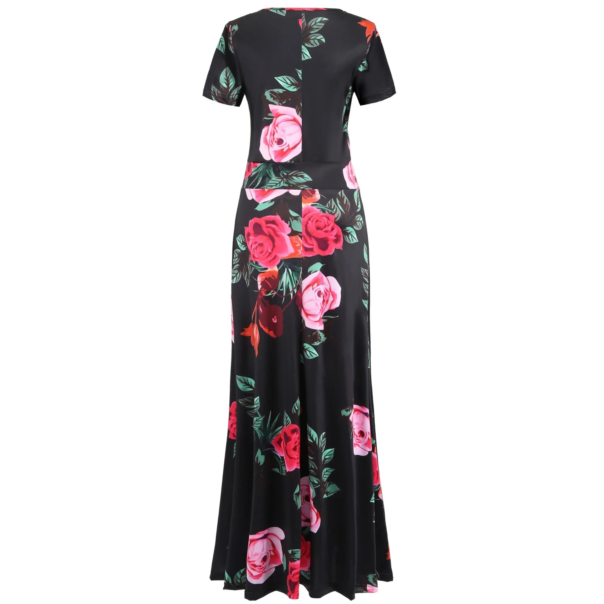 Floral Maxi Dress Women's Casual Summer Robe Short-Sleeved Round Neck Elegant