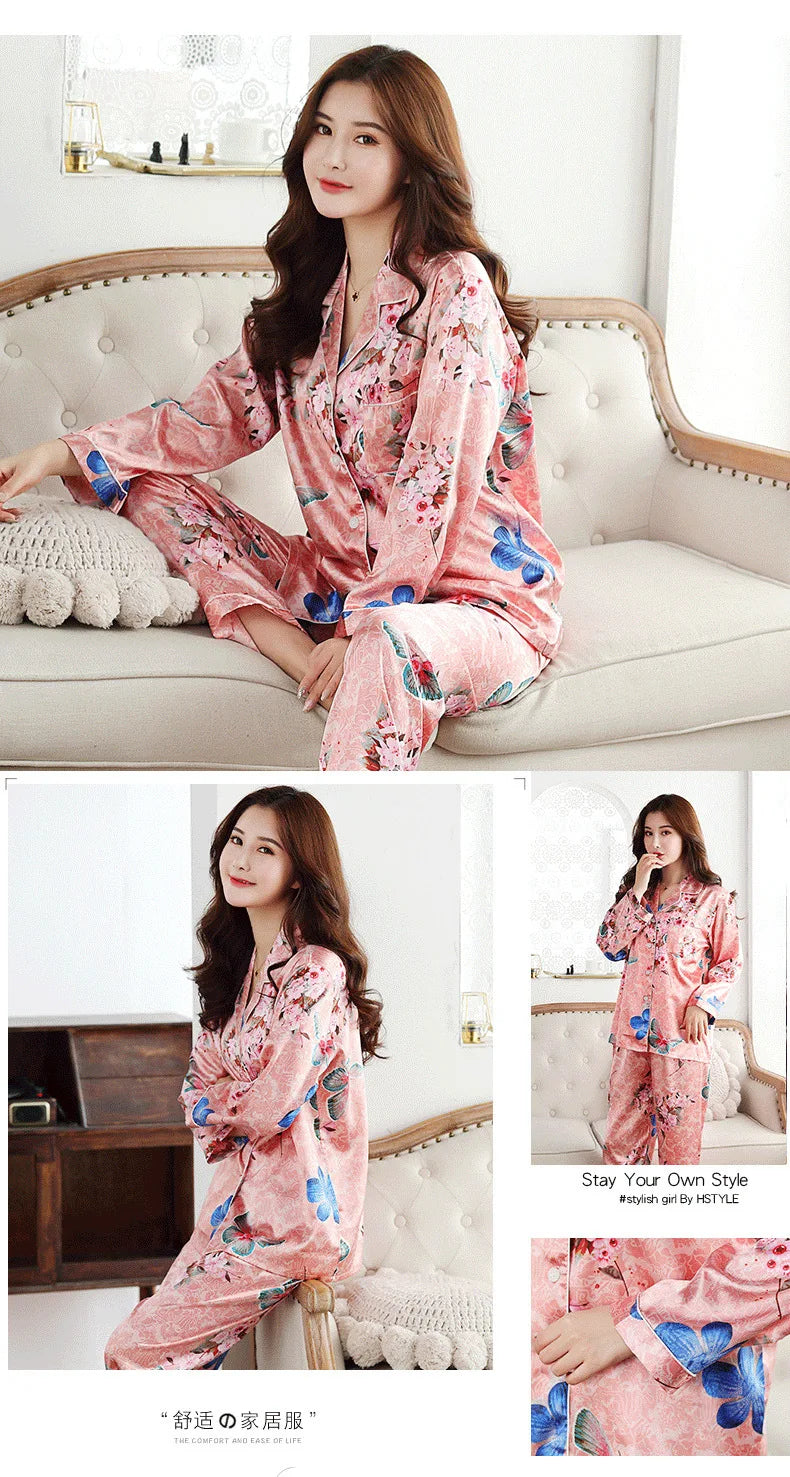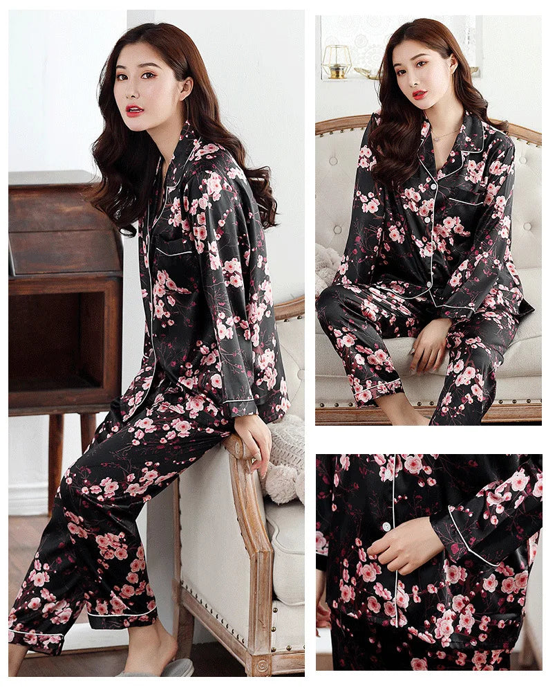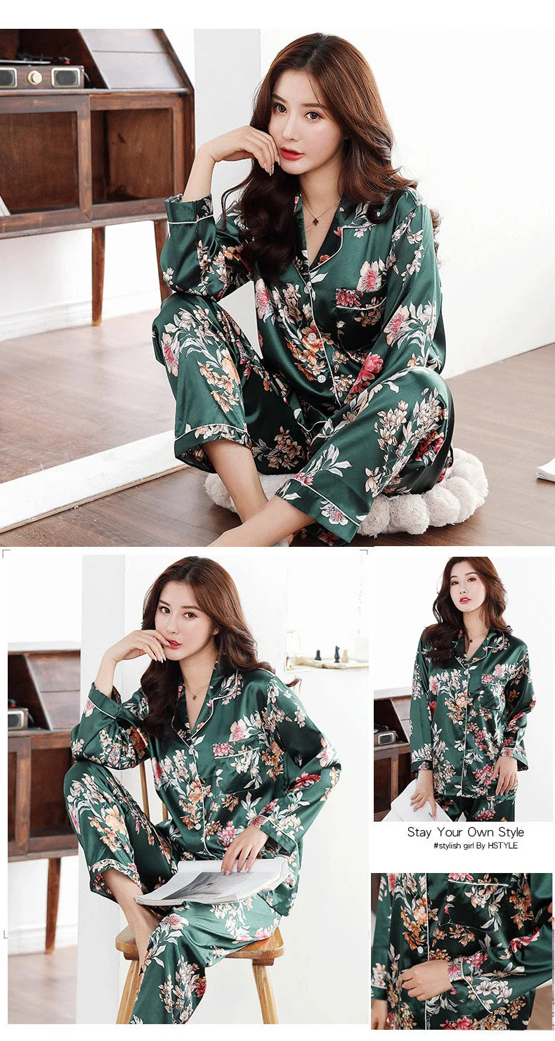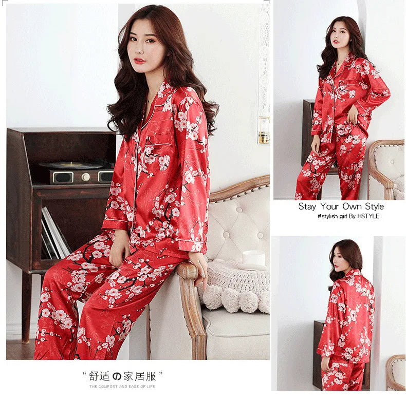 Women's Satin Silk Pajama Set - Winter Button PJs (2 Pieces)