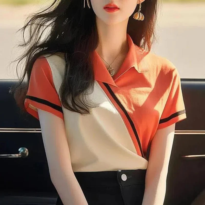Summer Short Sleeve Pullover – Women's Turn-Down Collar T-Shirt for Casual and Formal Wear