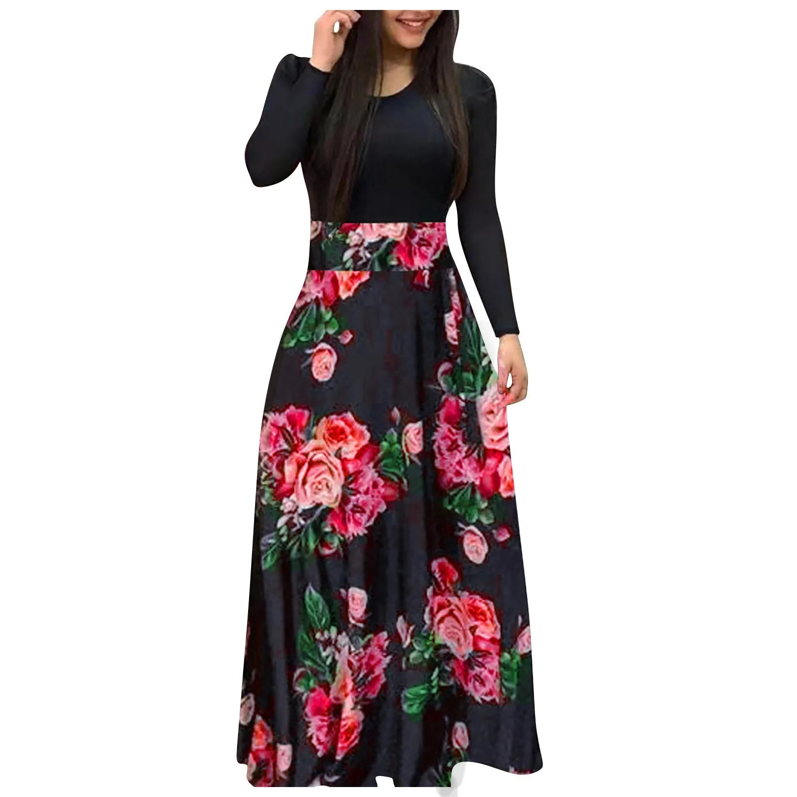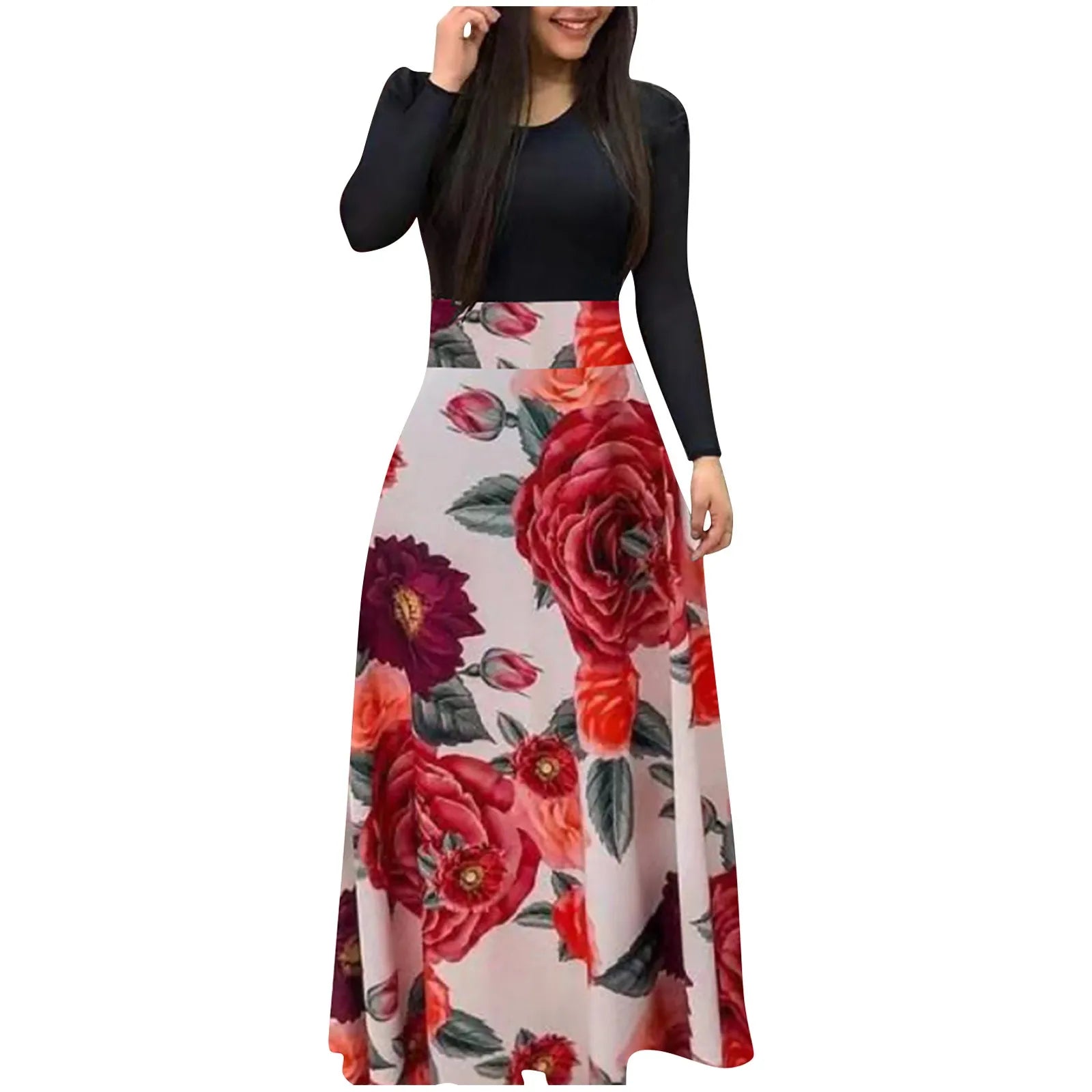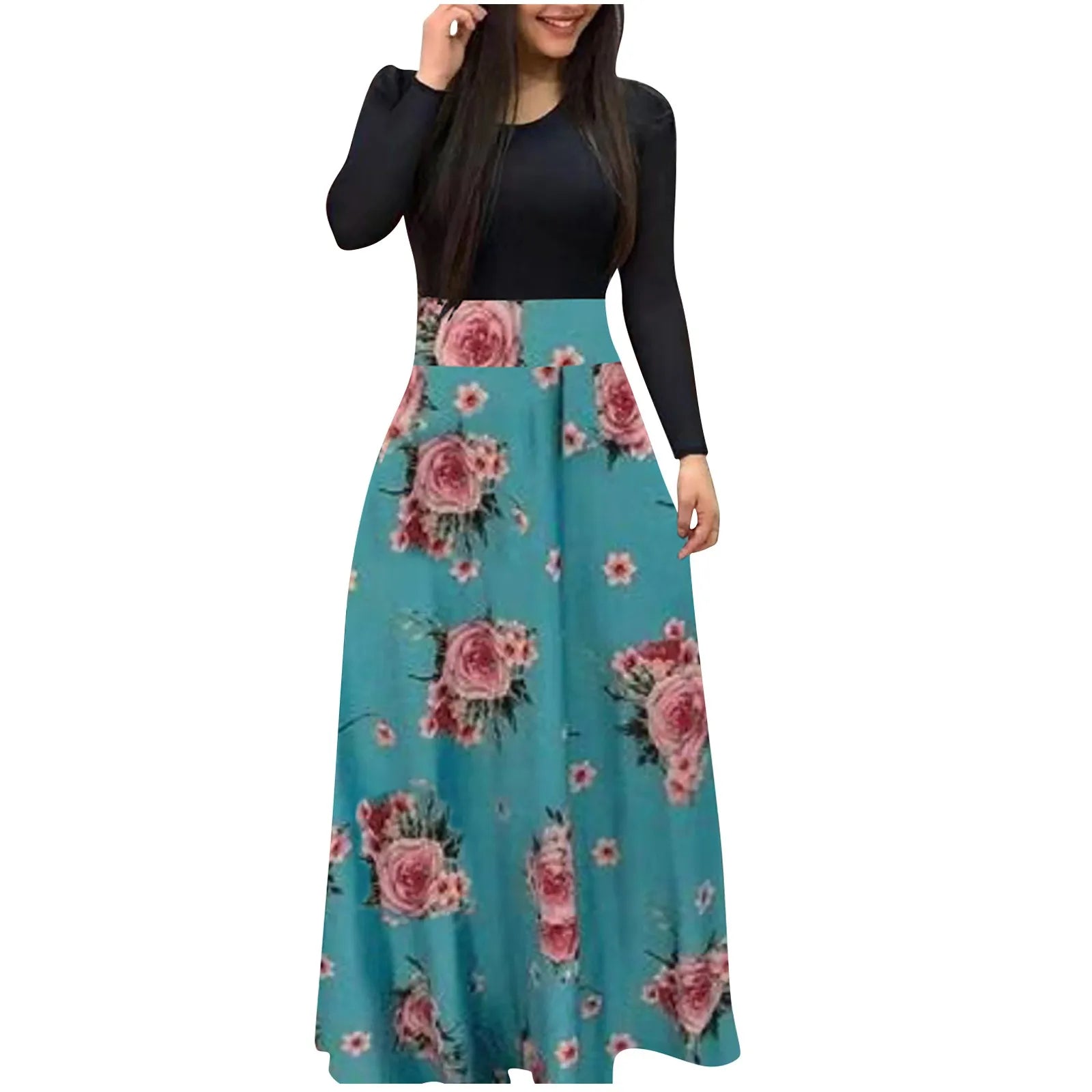 Floral Print Long Sleeve Maxi Dress - Women's Loose Holiday Wedding Party Dress