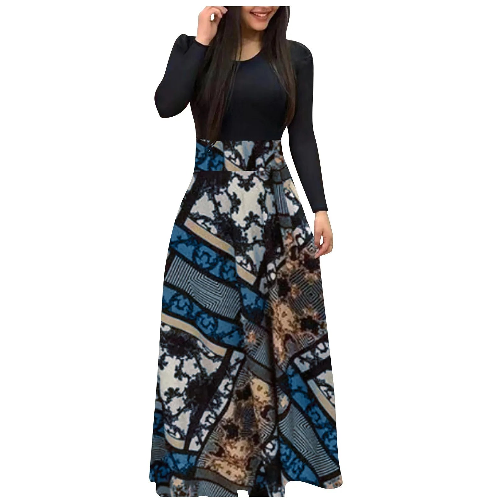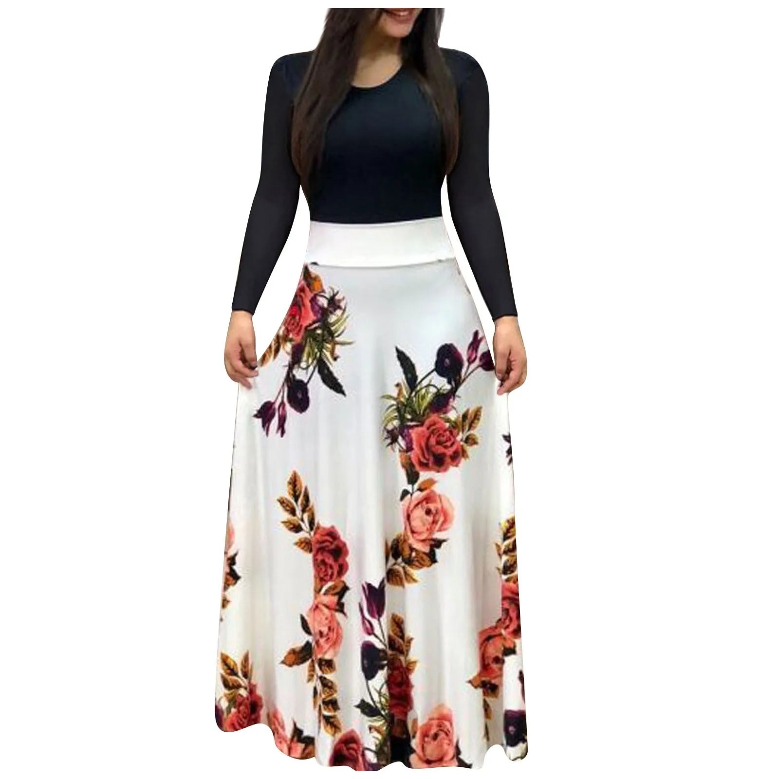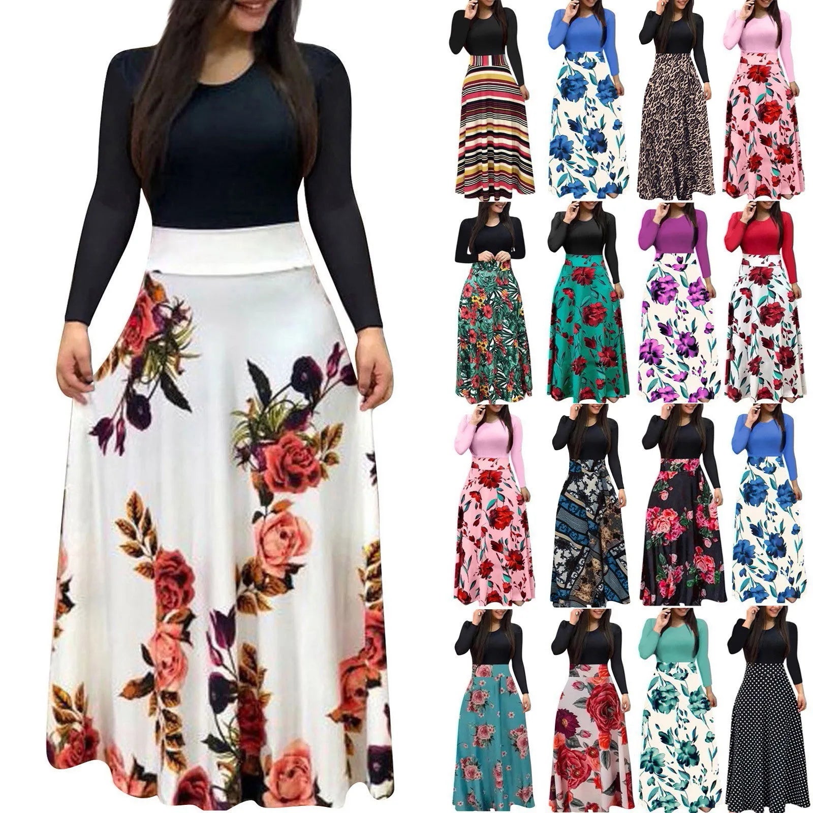 Floral Print Long Sleeve Maxi Dress - Women's Loose Holiday Wedding Party Dress